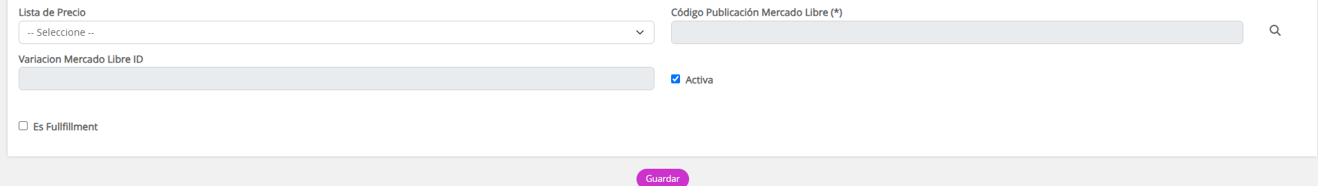 Se debe dar de alta previamente la Configuración que operará con la interfaz de Mercado Libre. Se sugiere leer el siguiente documento Interfaz Mercado Libre